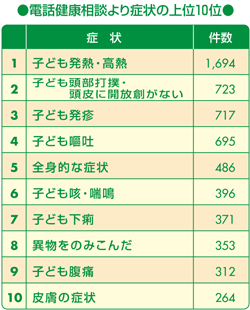 今回は、お母様たちから寄せられたお子さんに関する電話健康相談の内容をご紹介しましょう。小児に関する相談は、年間およそ2万9,000件に達します。このうち、大部分はお母様の不安に由来するもので、受診後の相談は「症状がよくならない」というのが主です。