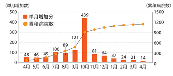 2014年の診療報酬改定で新設されて以来、届出数は1000病院を超え、そのほとんどが一般病床からの転換だ。