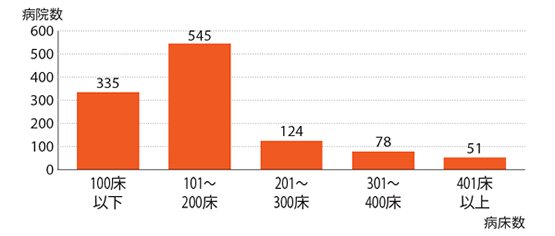 グローバルヘルスコンサルティング・ジャパン[GHC-J]の集計によると、2014年4月から15年3月における地域包括ケア病棟の届出数は1133病院。14年10月に急増したが、それ以降は微増である。200床以下の中小病院からの届出が中心だ。病床数は、確認できる24道県だけで1万4595床。うち一般病床からの移行が1万3830床、療養病床からの移行が765床。また、1病院あたりの地域包括ケア病床数は、10床以下が154病院と最多で、病棟単位での導入となる40床以上の病院はまだ少ない。
