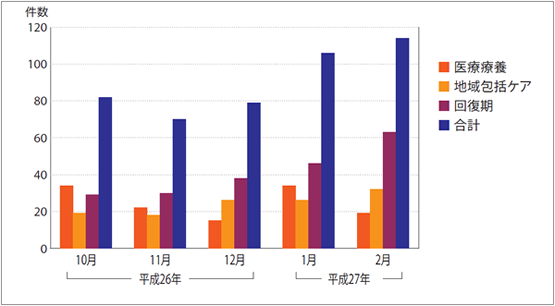 これは同院に限った話ではない。地域包括ケア病棟の新設から1年で、浮き彫りになってきた課題である。「病院によっては、自院で急性期を終えた患者のポストアキュートを地域包括ケア病棟の主体にせざるを得なく、回復期リハビリ病棟と同等の機能になっています。もともと地域包括ケア病棟には、『病院完結から地域完結へ』という狙いがありますが、結果として連携が減り、病院完結型の医療になりかねません。病院側が本来の地域包括ケア病棟の役割をもっと積極的に打ち出していくと同時に、急性期部分の診療報酬の見直しも必要ではないでしょうか」