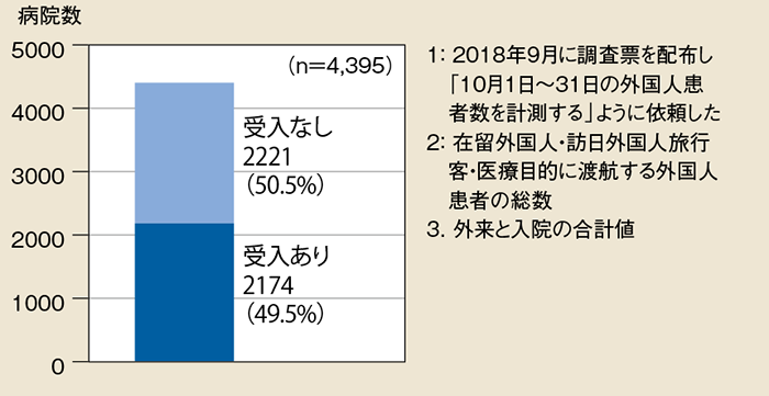 - 図表2● 厚労省調査・外国人患者の受入れ実績(2018年10月実績)