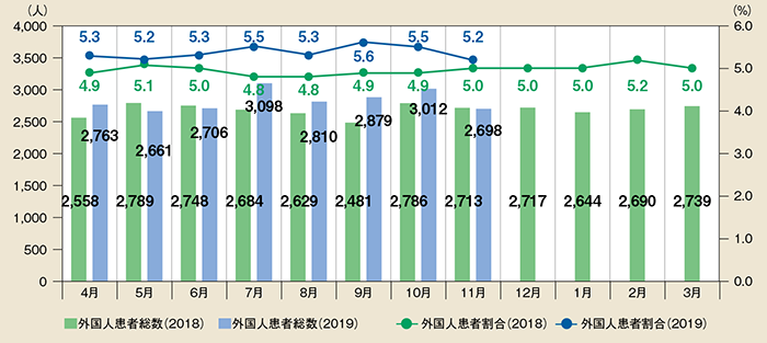 - 図表1● 聖路加国際病院(本院)の外国人外来患者数の推移(2019年11月現在)