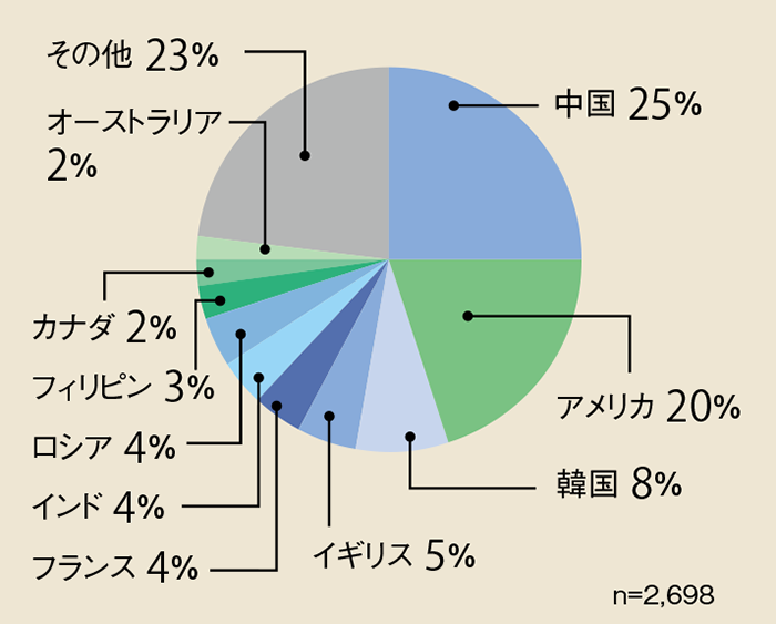- 図表2● 聖路加国際病院(本院)の外国人外来患者の国籍割合(2019年11月現在)