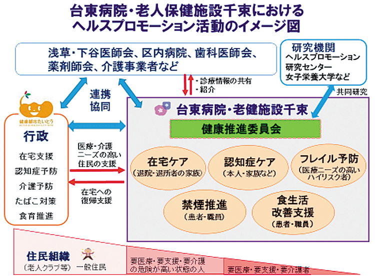 - 図表2● 台東病院・老人保健施設千束におけるヘルスプロモーション活動のイメージ図