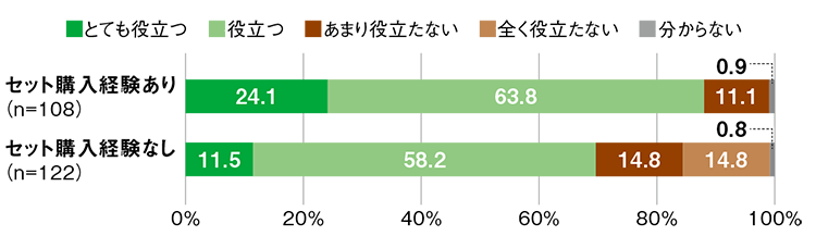 - 「セット購入経験あり」の88%、「セット購入経験無し」の70%(職員全体の約80%)が、ヘルシーセットは職場でバランスの良い食事をとることに役立つと回答