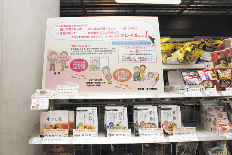もう一つの特徴的な取り組みが、『ヘルシーコンビニプロジェクト』だ。コンビニ側にも協力を求め、院内コンビニで扱う商品を見直し、大容量のカップ麺や糖分が多く含まれるドリンクを減らす、あるいは目立ちにくい場所に陳列するなどの策を講じたり、塩分量やカロリーを表示したポップを立てたりすることで、偏らない食事を自ら選択できるような店づくりに努めている。