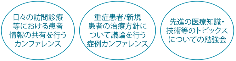 - 法人3拠点をインターネットでつなぎ、多職種カンファレンスを頻回に実施