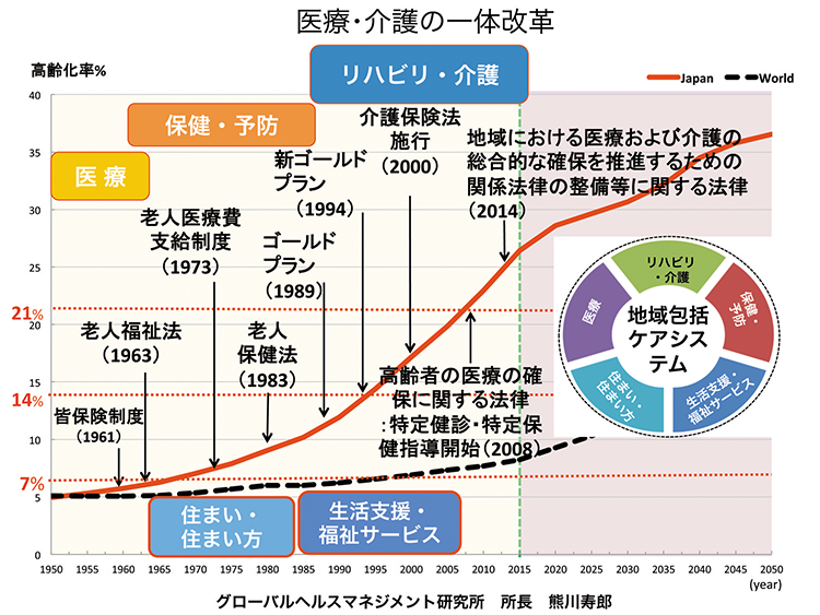 このまま高齢化が進めば、現行の医療保険・介護保険制度では支えきれない部分が増えてくる。