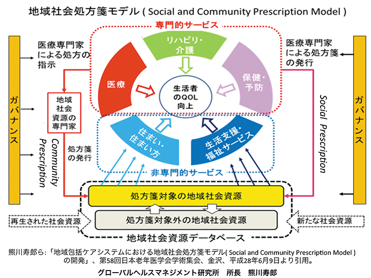 そこで熊川氏が新たに提案するのが、“医療・介護の枠組みの外にある地域資源を拾い出してデータベース化し、それらを必要とする人が有効活用できるしくみ(地域社会処方箋モデル)をつくること”(図表10)。