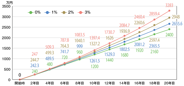 - 図表7● 毎月10万円積み立てた場合の利回りによる運用成果の違い