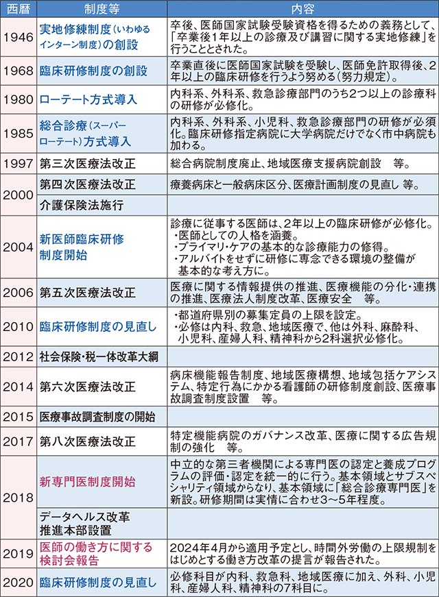 新専門医制度、新医師臨床研修制度、医師の働き方改革