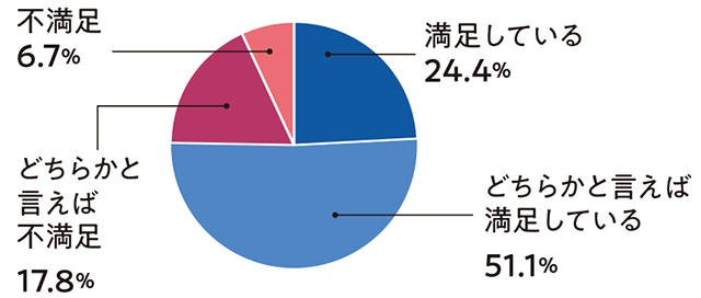 読者アンケートで、Q1「現在のご自身のキャリアに満足していますか?」と訊ねたところ、「満足」「どちらかと言えば満足」を合わせて75・5%にのぼった。その理由として、「独自性が評価されていろいろな仕事を指名でもらえるようになったから」(産業医・40代後半・男性)、「学位や専門医がすべて順調に取得できたから」(その他内科系・30代後半・男性)などのコメントが寄せられた。適正に評価されたり、思い通りのキャリアを描けたりすることが、満足につながっているようだ。