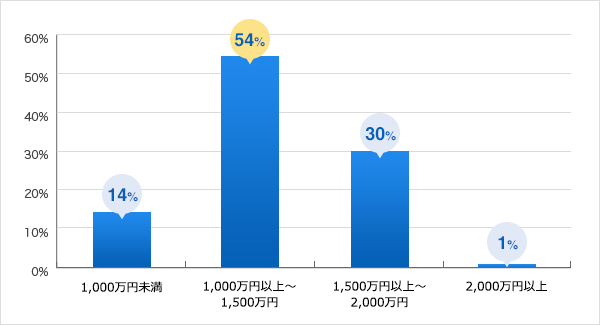 病理診断科で働く医師の希望年収は、「1,000万円以上~1,500万円未満」が最も多く(54%)、次いで「1,500万円以上~2,000万円未満」(30%)、「1,000万円未満」(14%)の順となっています。